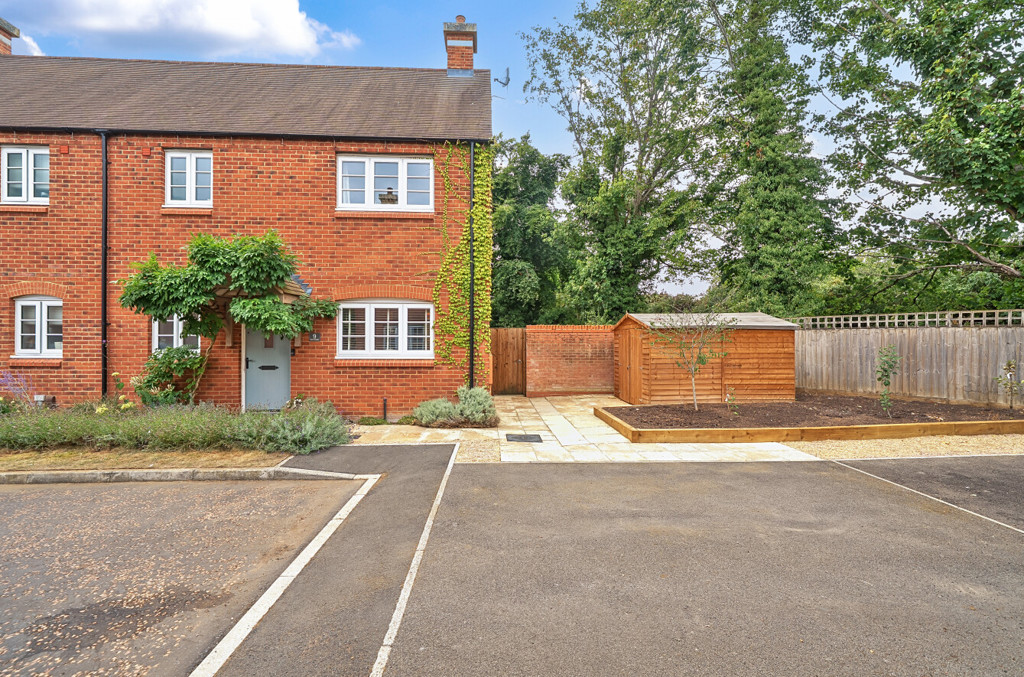 The garden is fully enclosed and has been landscaped over two tiers. The first tier has been mainly laid to patio and also includes a lawned area, gravelled areas, wooden gate allowing access to the front and raised flower beds to the borders containing plants and shrubs. A step ascends to the second tier which has been block-paved and allows space for a shed; it also includes flower beds containing plants, shrubs and some young trees.