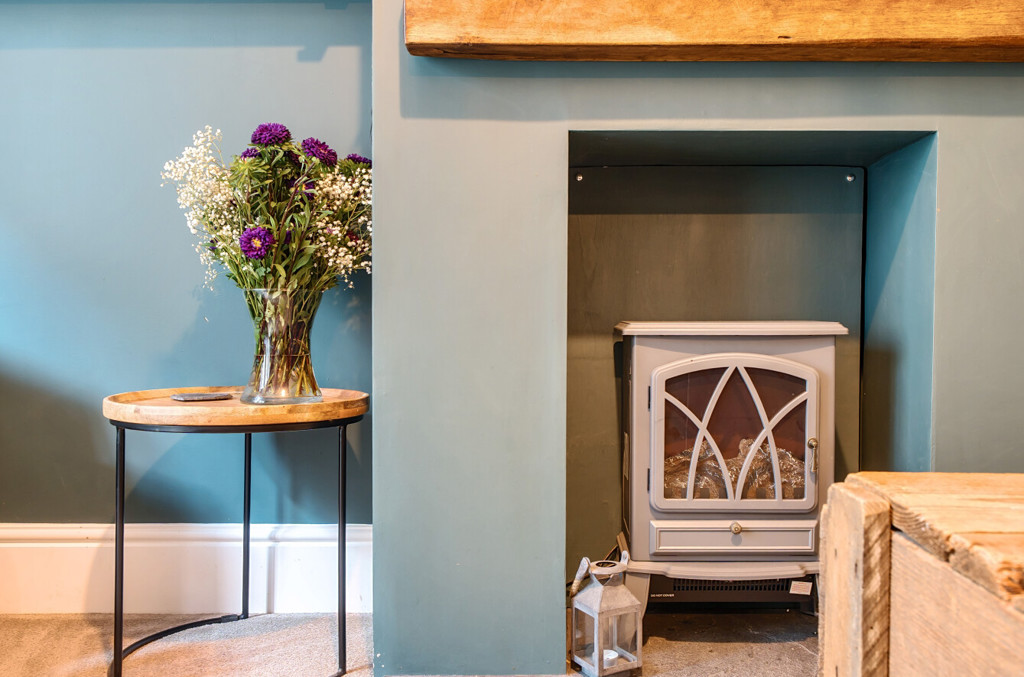 The sitting room includes carpeted flooring and a feature fireplace. To the rear aspect are two full height glazed windows and glazed sliding doors which lead out to the sun room.