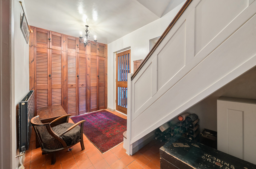The hallway includes tiled flooring, built-in storage cupboards, stairs rising to the first floor landing and doors leading to all ground floor accommodation.