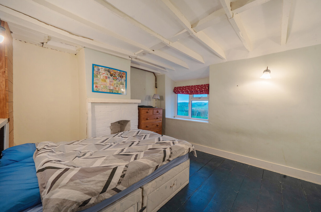 Bedroom one includes exposed wooden floorboards, exposed original beams, glazed window to the front aspect, feature fireplace and wall lighting.