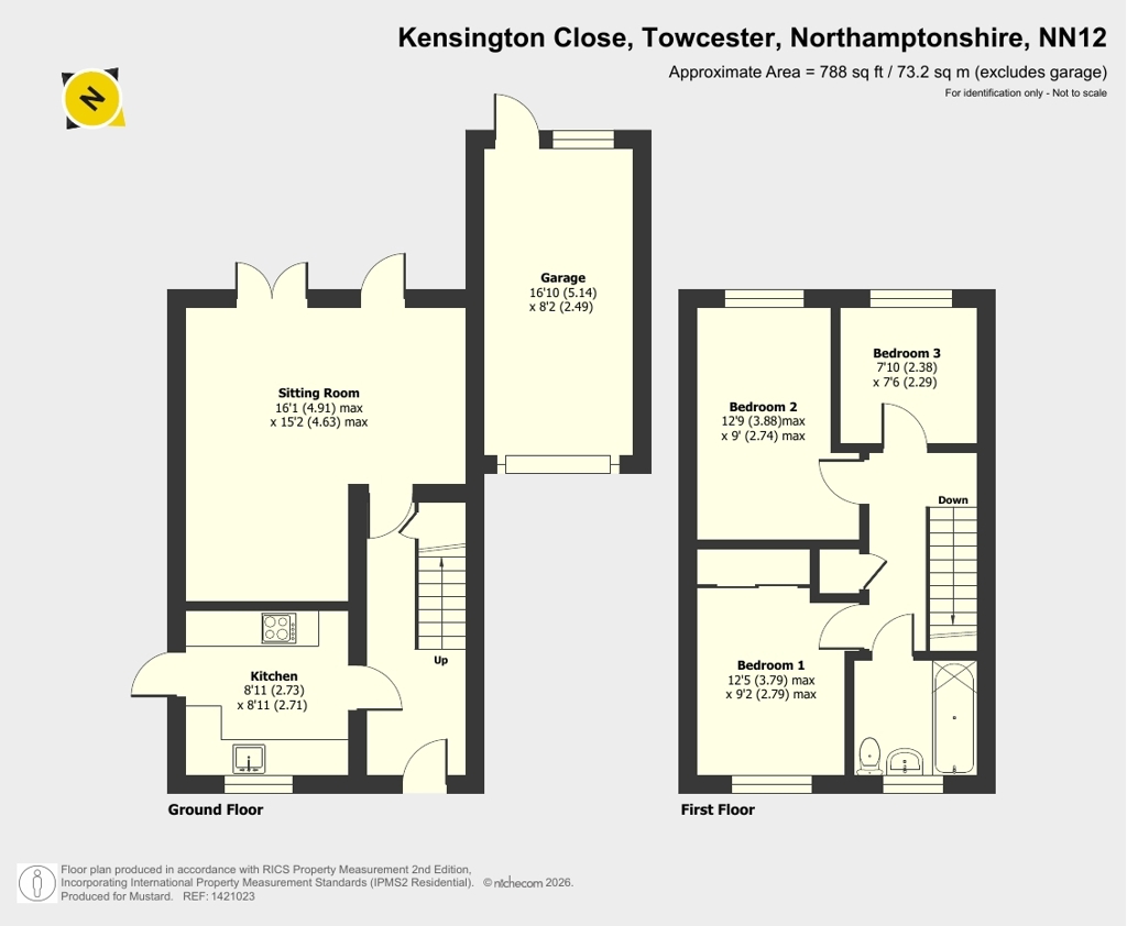 To the side of the property is a concrete driveway which allows off road parking and leads to the garage; which has a window and personnel door to the rear aspect, up-and-over door, power, and lighting. To the front of the property is a garden which is bordered by a picket fence and has been laid to gravel; also including patio slabs allowing for additional off-road parking. A footpath with four ascending steps leads to the front door which has a canopy porch over.