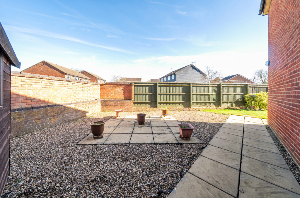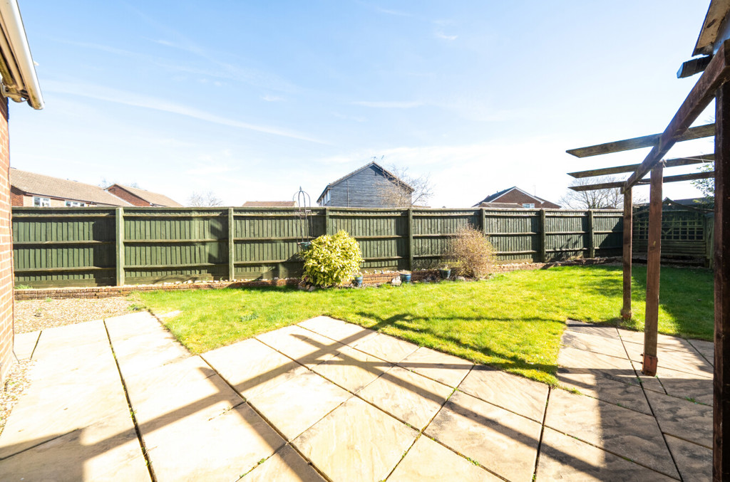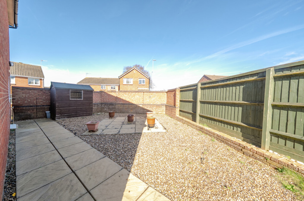 The garden is fully enclosed by brick wall and timber fencing. To the rear of the property is a large area laid to patio, a lawned area, a pergola, and some shrubs to the borders; there is also access into the garage via a partially glazed personnel door. To the side is an area which has been laid to gravel and patio which includes a wooden shed and there’s a wooden gate providing access to the front.