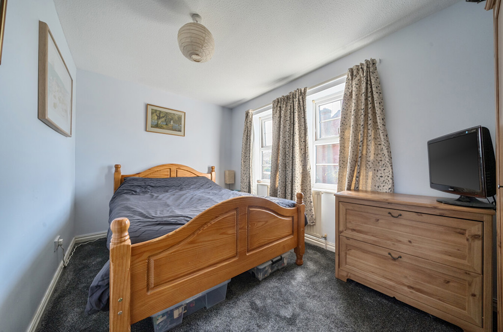 Bedroom two includes carpeted flooring, built in storage cupboard and a window to the front aspect.