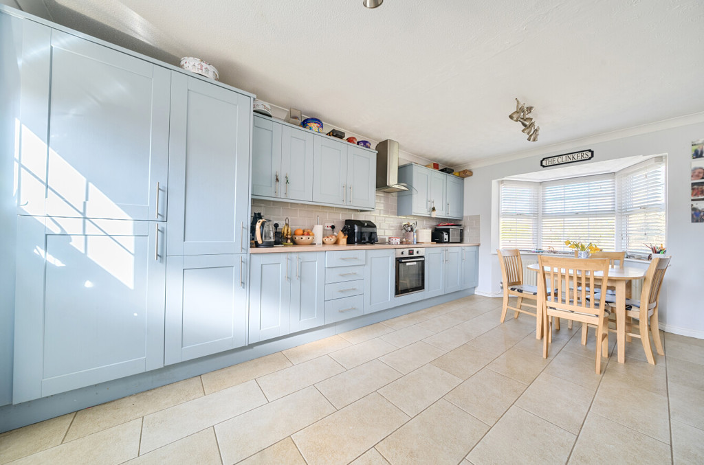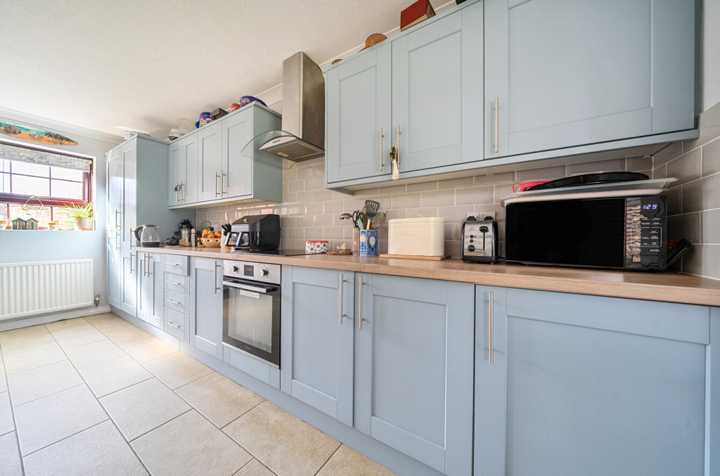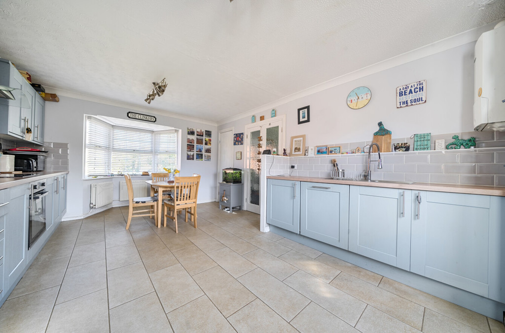 The kitchen includes both high level and low level units, sink with mixer tap, tiled flooring, bay window to the front aspect, tiled splashbacks, access to an under stairs storage cupboard and integrated appliances such as a low-level oven, hob, extractor hood, fridge/freezer, washing machine and a dishwasher. Glazed French doors lead into the sitting room and to the rear aspect is a window and partially glazed doors which leads out to the garden.