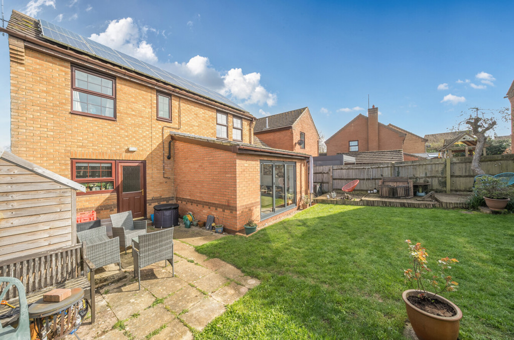 The garden is fully enclosed by brick wall and timber fencing and has been mainly laid to lawn. It also includes a decked area for seating, patio area for seating, space for sheds, a mature tree and a wooden access gate to the side.