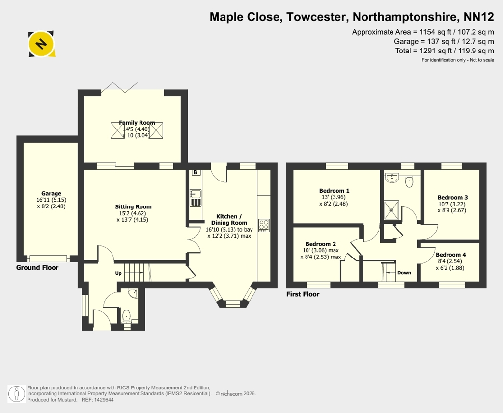 Bedroom one includes carpeted flooring and two windows to the rear aspect.