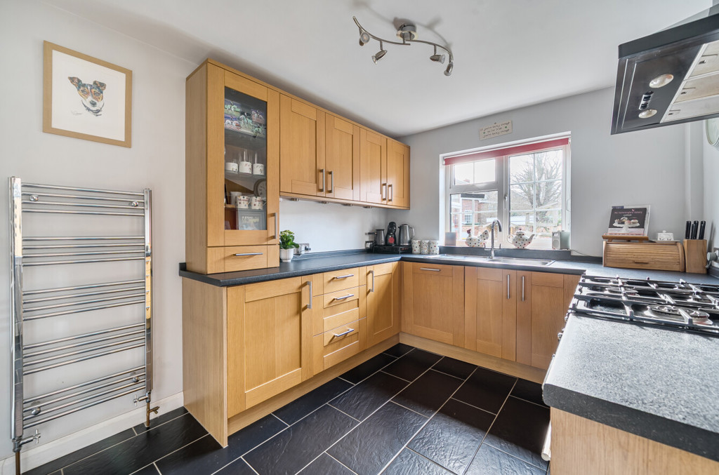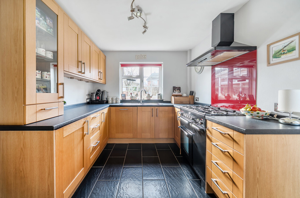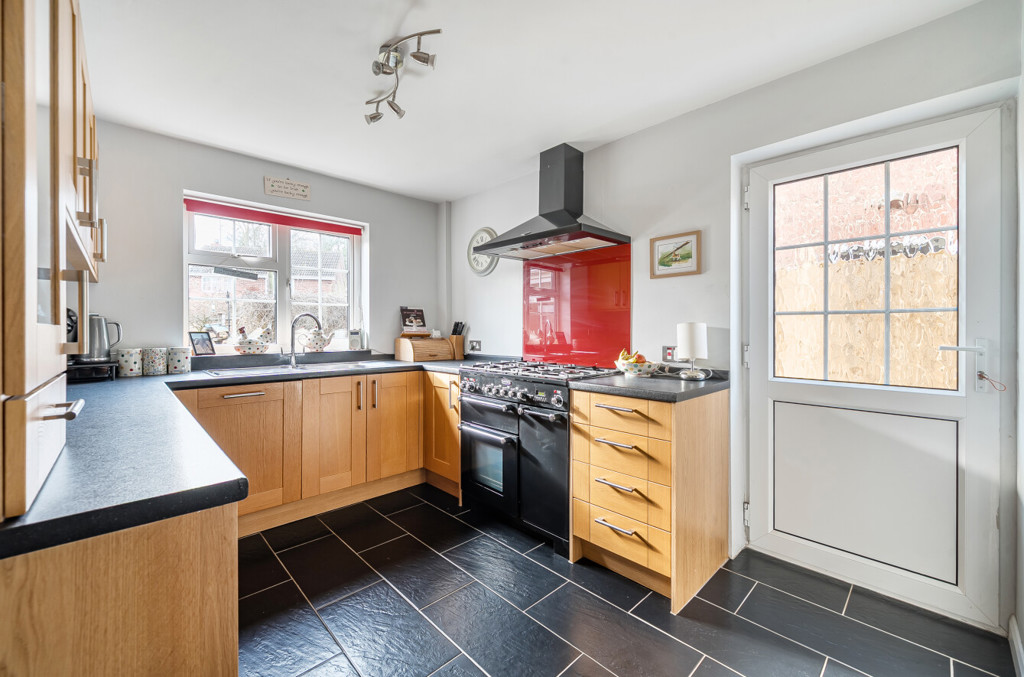 The kitchen includes both low level and high level units, a stainless steel sink with mixer tap, tiled flooring, window to the rear aspect and integrated appliances such as an extractor hood and a dishwasher there is a space for a Rangemaster oven and a personnel door leading to the rear garden.