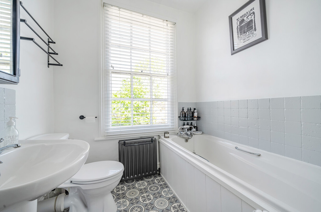 The bathroom includes a WC, handwash basin, panelled bath, glazed window to the rear aspect, tiled flooring and tiling to splashback areas.