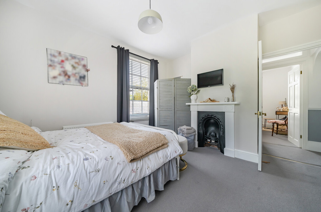 Bedroom one includes carpeted flooring, built in wardrobes, original character feature fireplace and a glazed window to the front aspect.