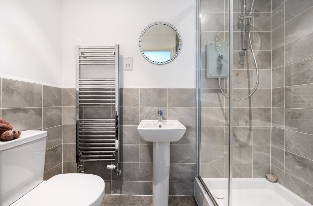 Ensuite two includes a WC, handwash basin, chrome towel radiator, spotlighting, double shower cubicle, shaver point, wall tiling and a extractor fan.