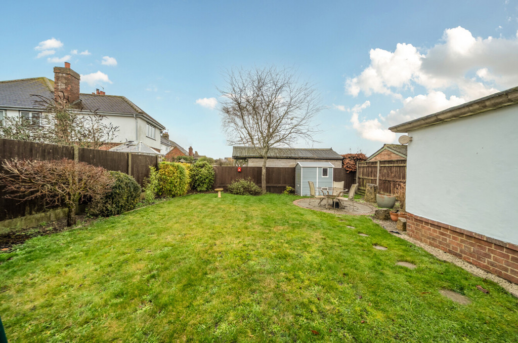 The garden is fully enclosed by timber fencing and has been mainly laid to lawn. It also includes a patio area for seating, wooden shed, brick-built storage shed and mature shrubs and plants to the borders. A footpath least around to the side of the property where there is a block paved area and a wooden gate providing access to the front.