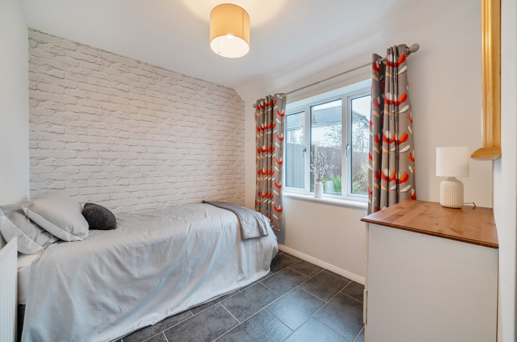 Bedroom two includes tile effect flooring and a window to the rear aspect.